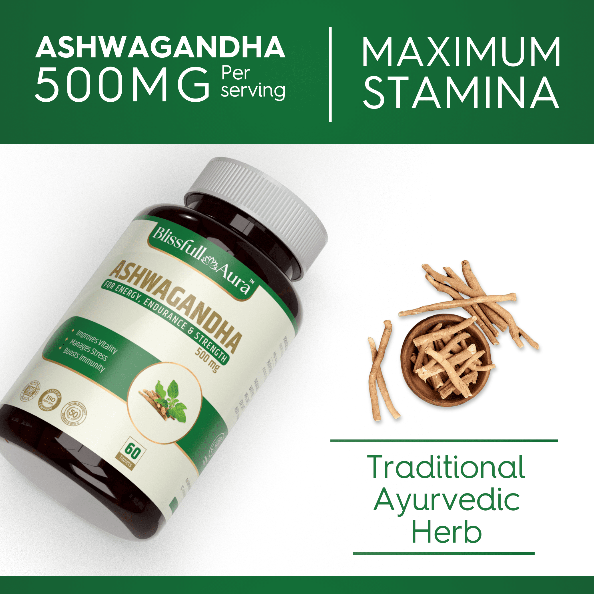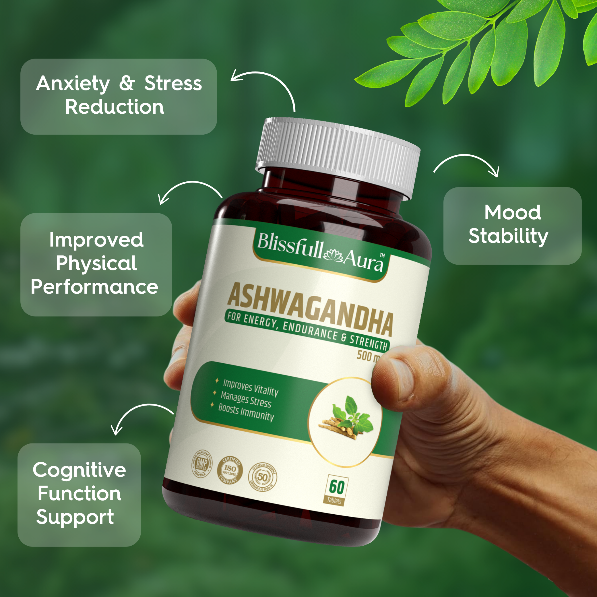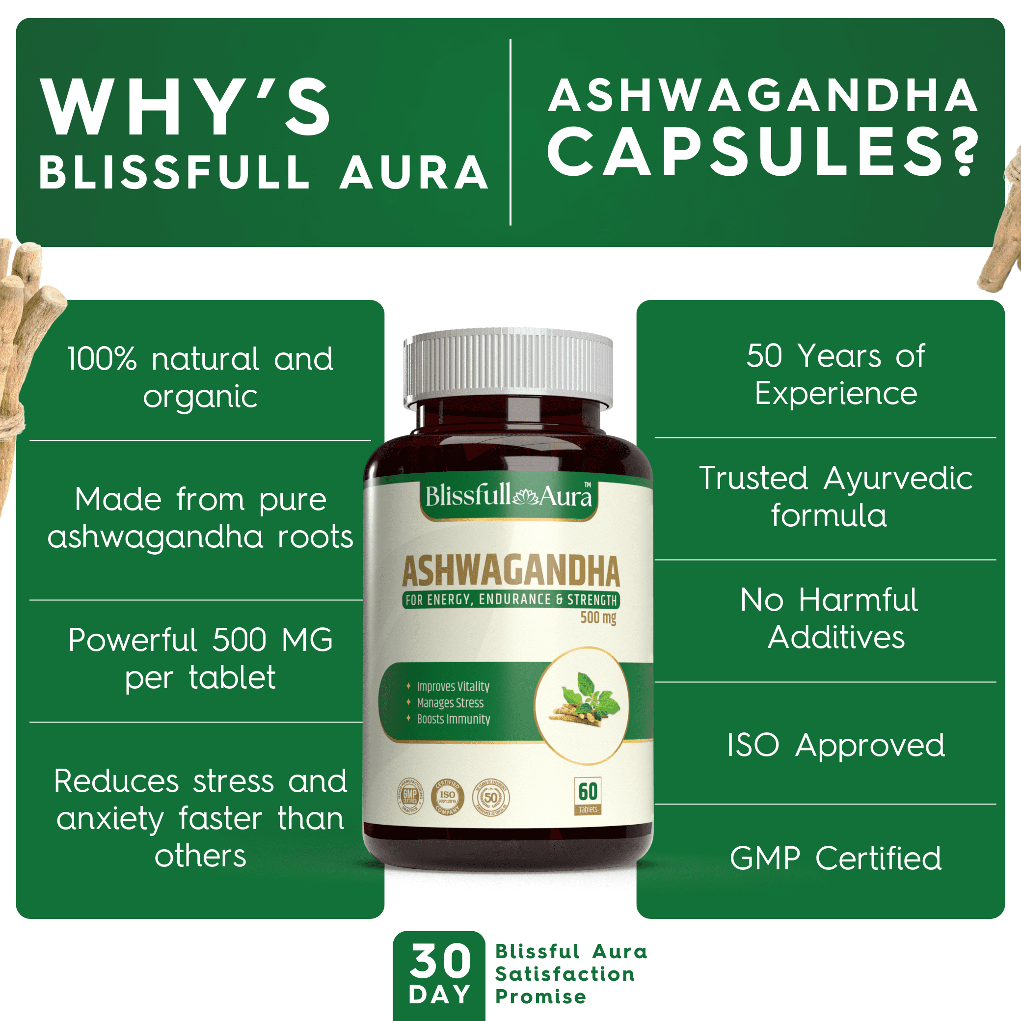 Ashwagandha Tablets for Men, Ashwagandha Supplement, 500 MG, 100% Natural and Organic, 60 Tablets