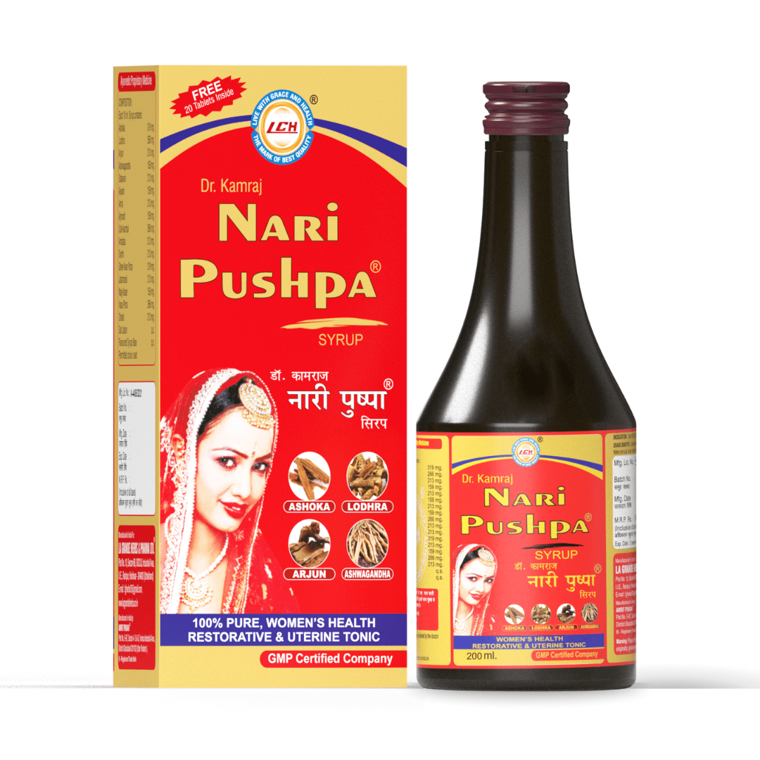 LGH Nari Pushpa is a time-tested Ayurvedic tonic designed for women’s wellness and inner harmony. Crafted with a powerful blend of 24+ authentic herbs, it supports hormonal balance, energy, and overall vitality—naturally and gracefully