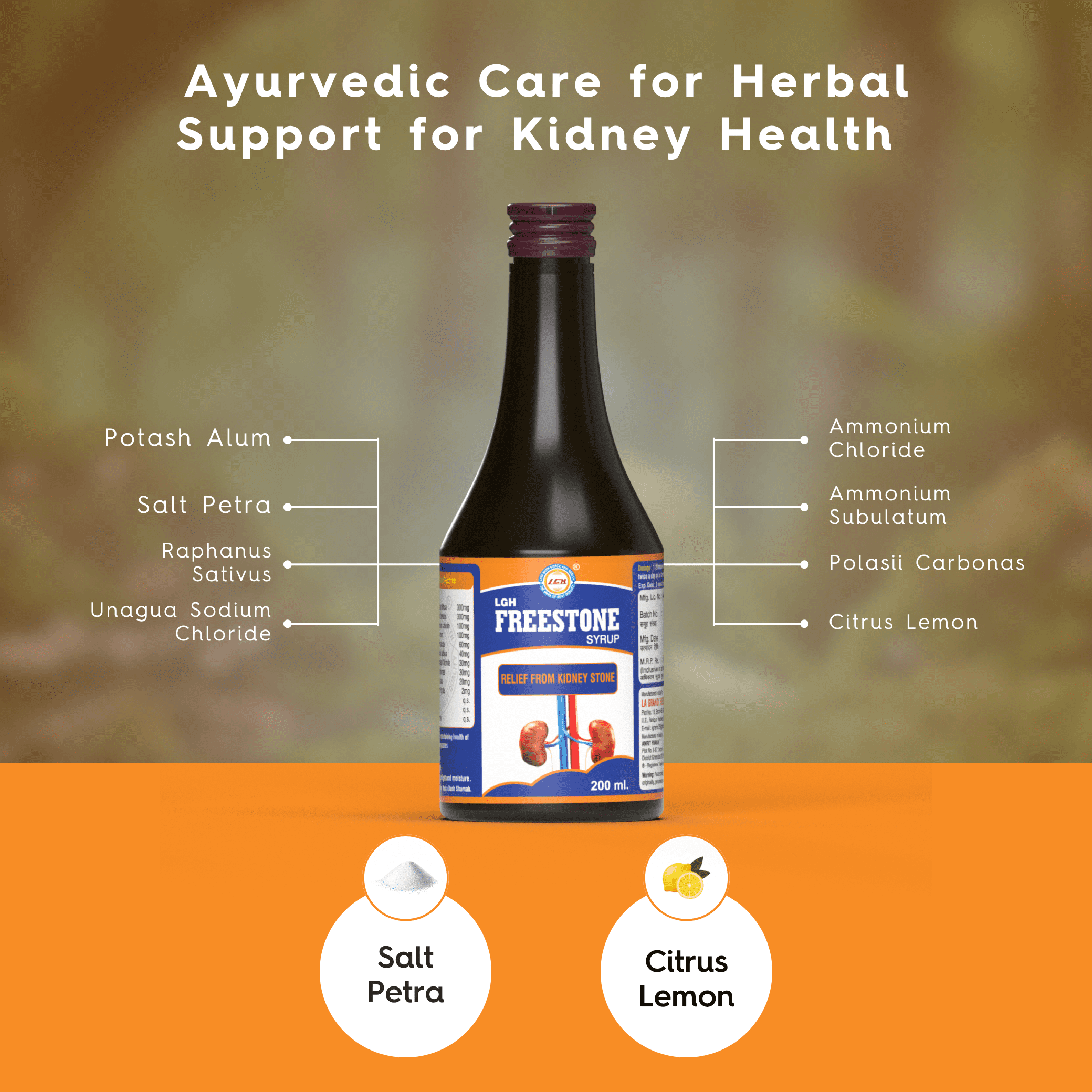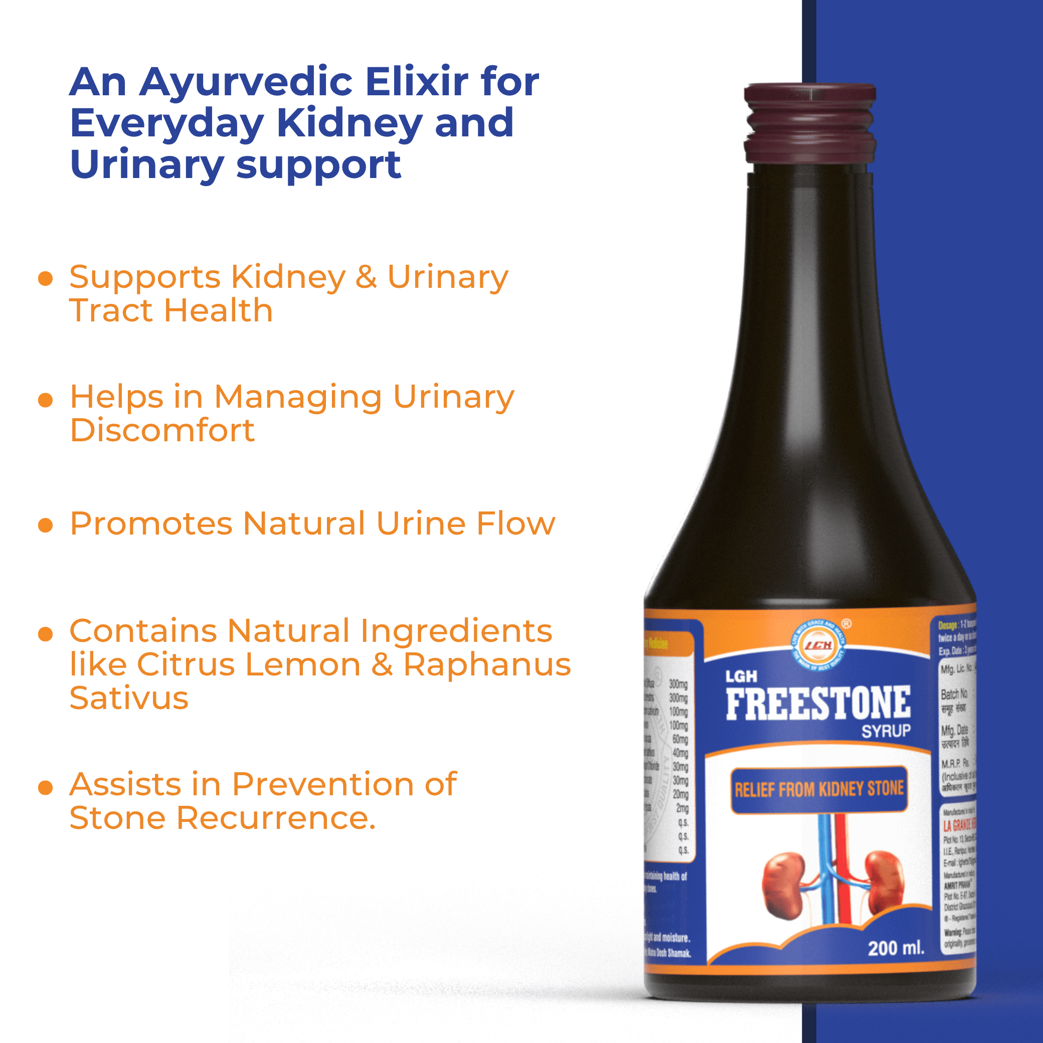 LGH Freestone Syrup, Ayurvedic Herbal Drink for Kidney & Urinary Health, Enhances Detox, Improves Renal Function, For Kidney Stones, Supports Bladder Health, 200 ml