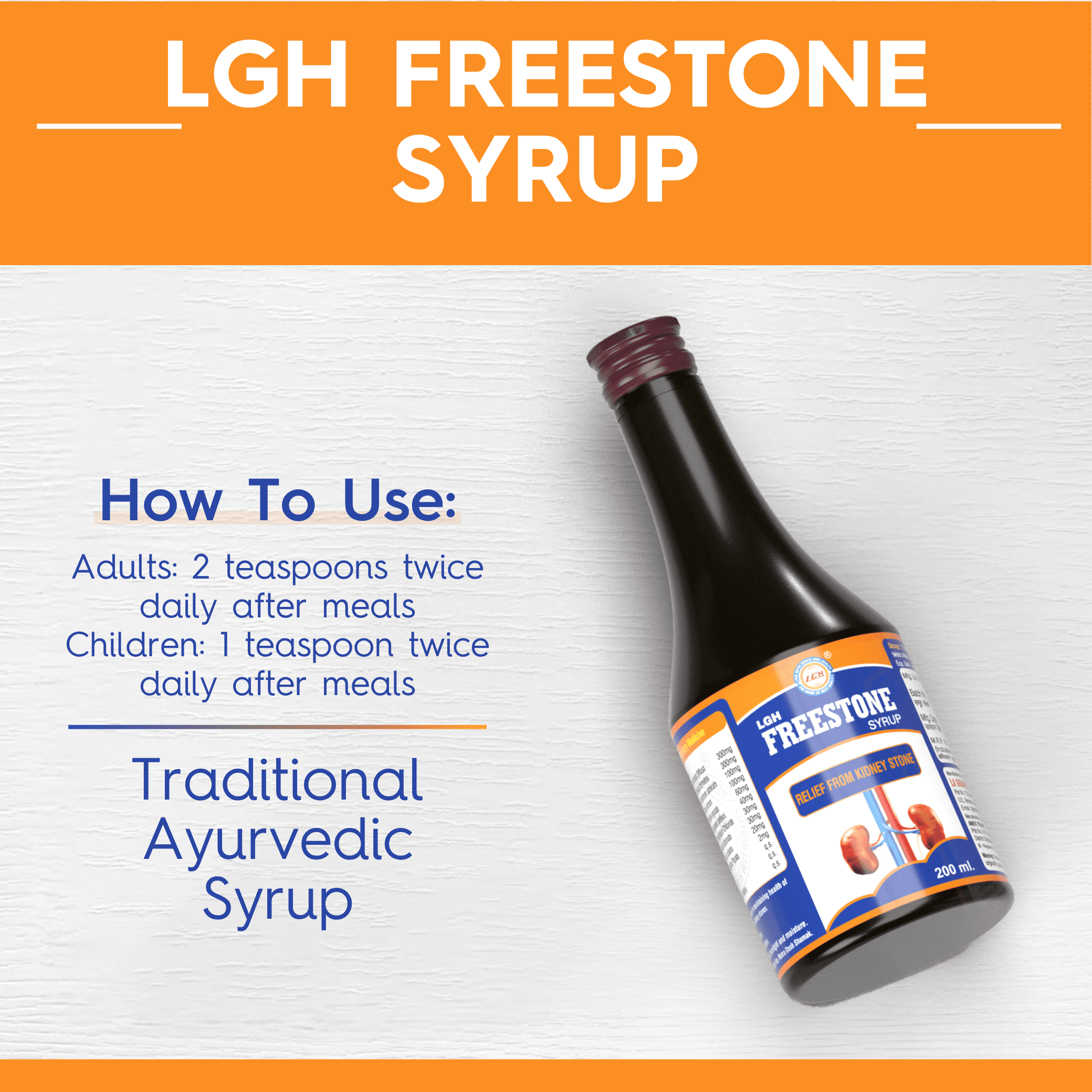 LGH Freestone Syrup 200ml, Ayurvedic Herbal Drink for Kidney & Urinary Health