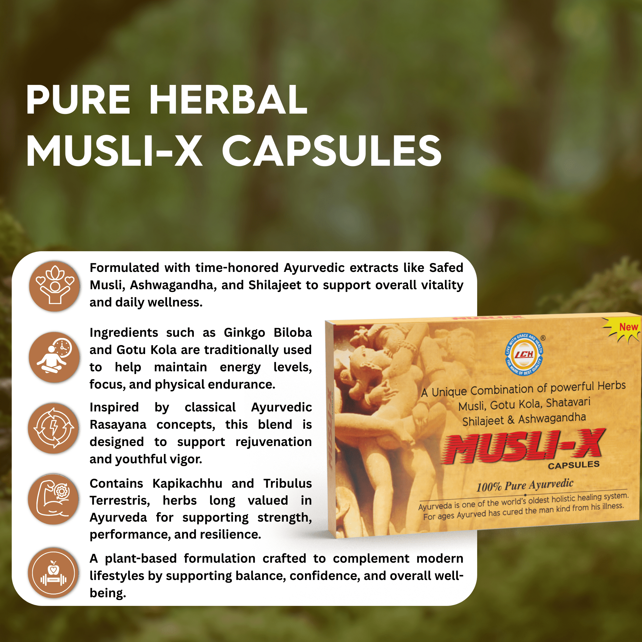 LGH Musli X Capsules, Ayurvedic Vitality & Energy Support, 100 Capsules