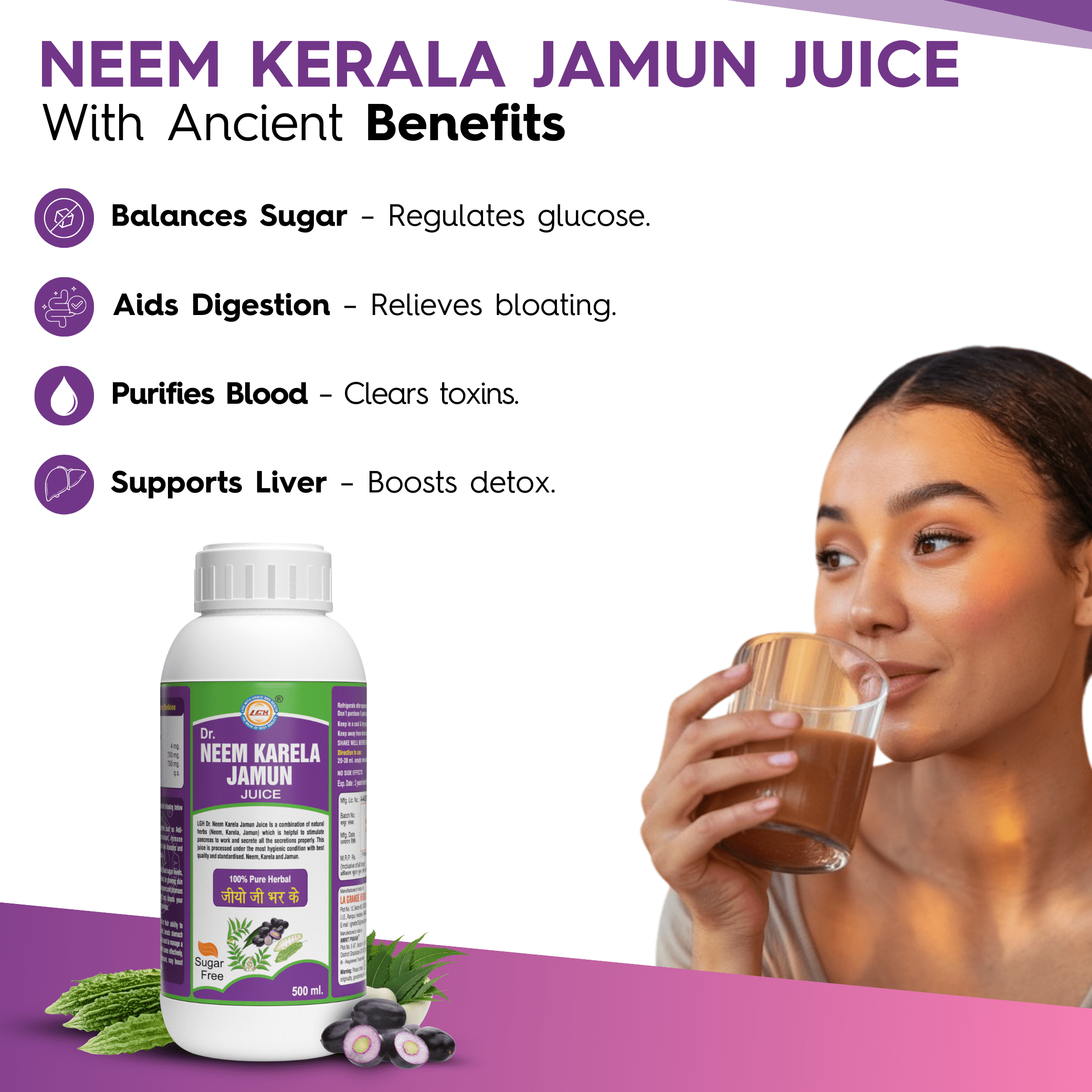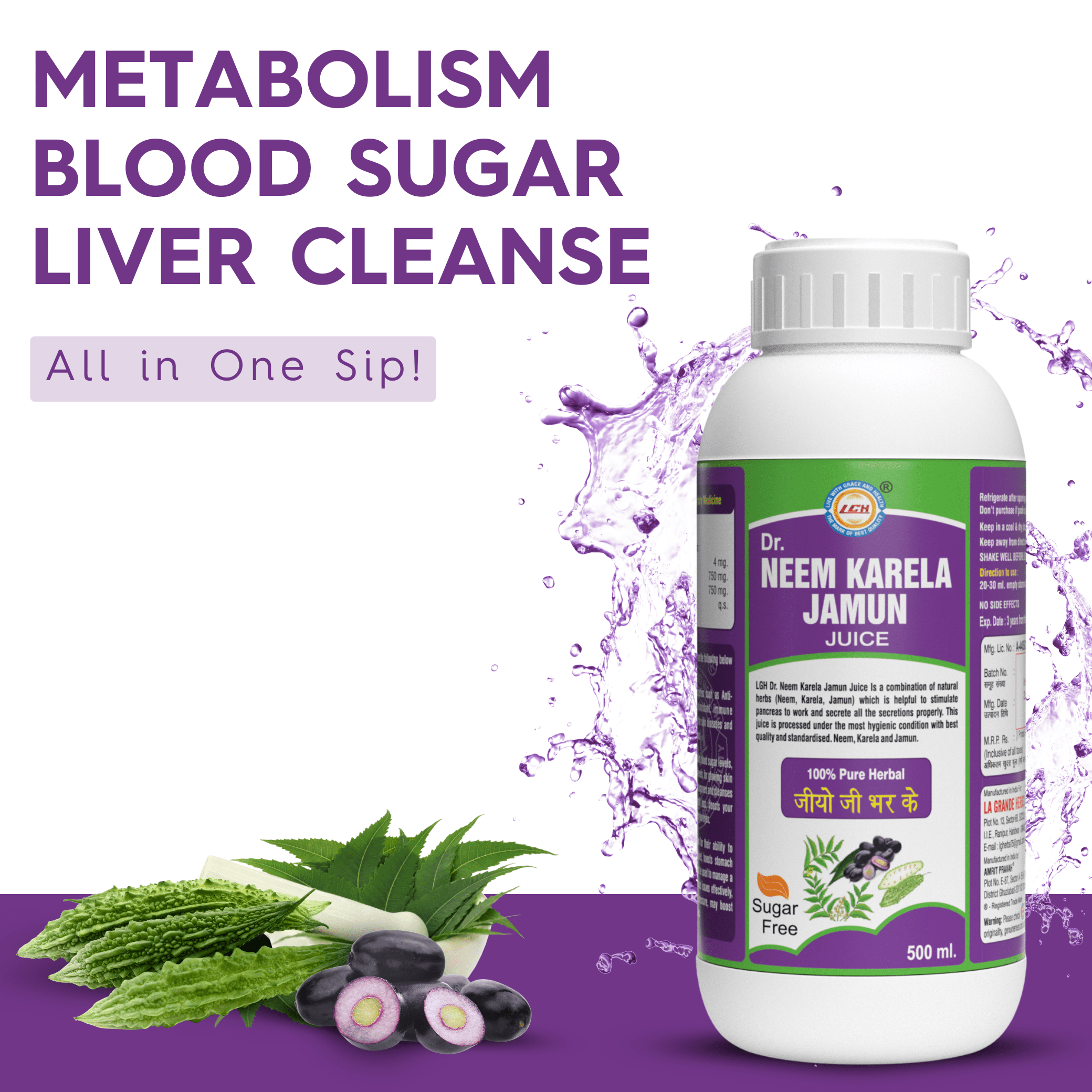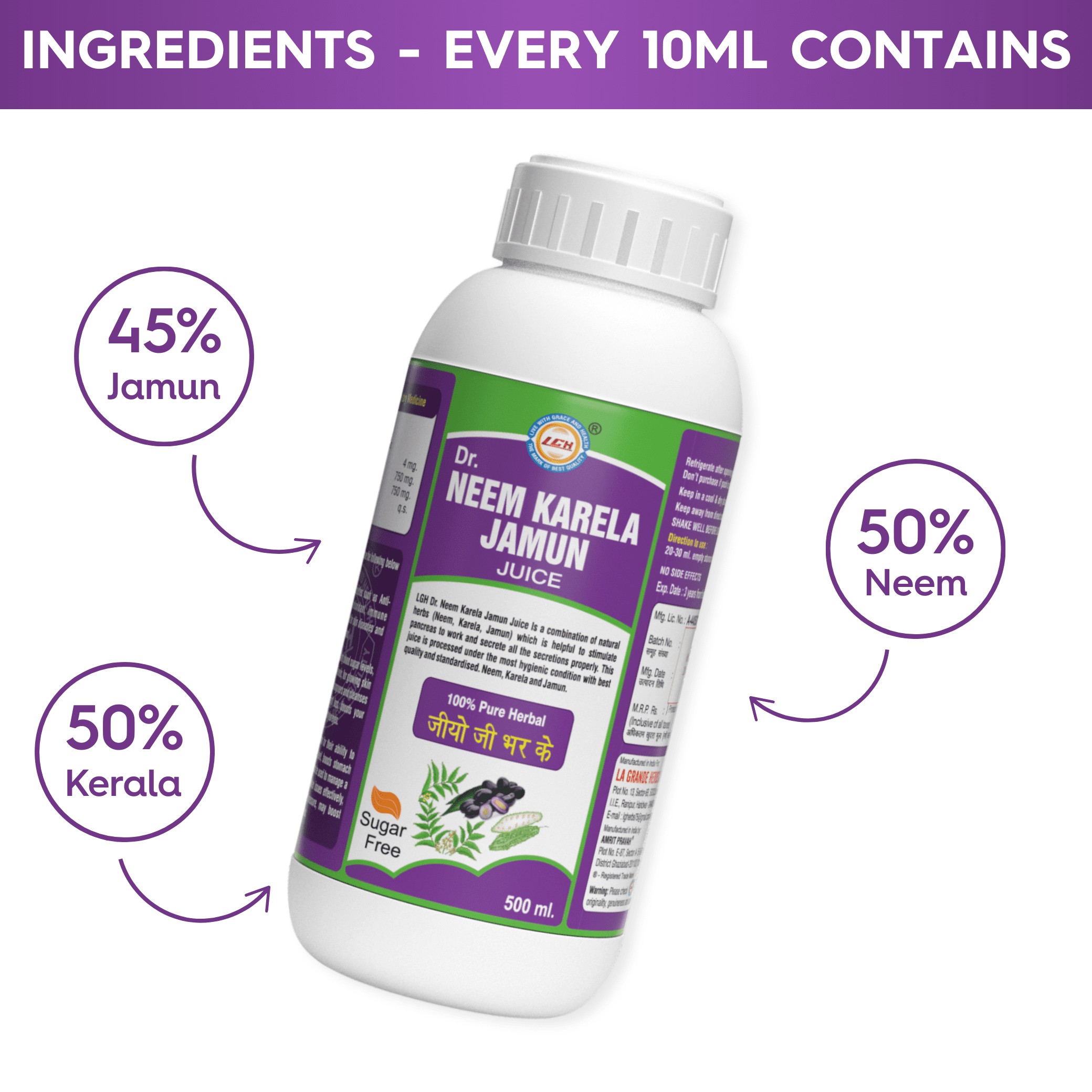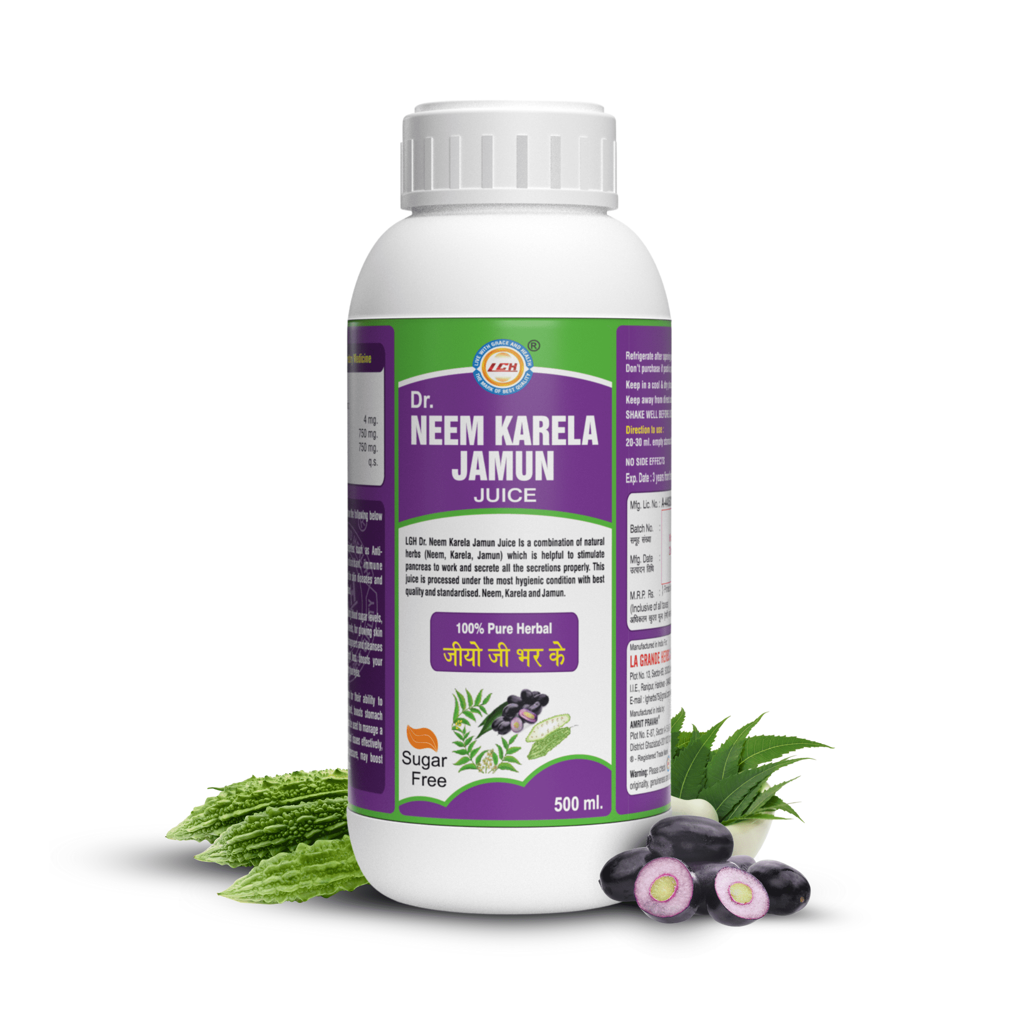 LGH Neem Karela Jamun Juice, Helps Control Blood Sugar Levels, 500ml