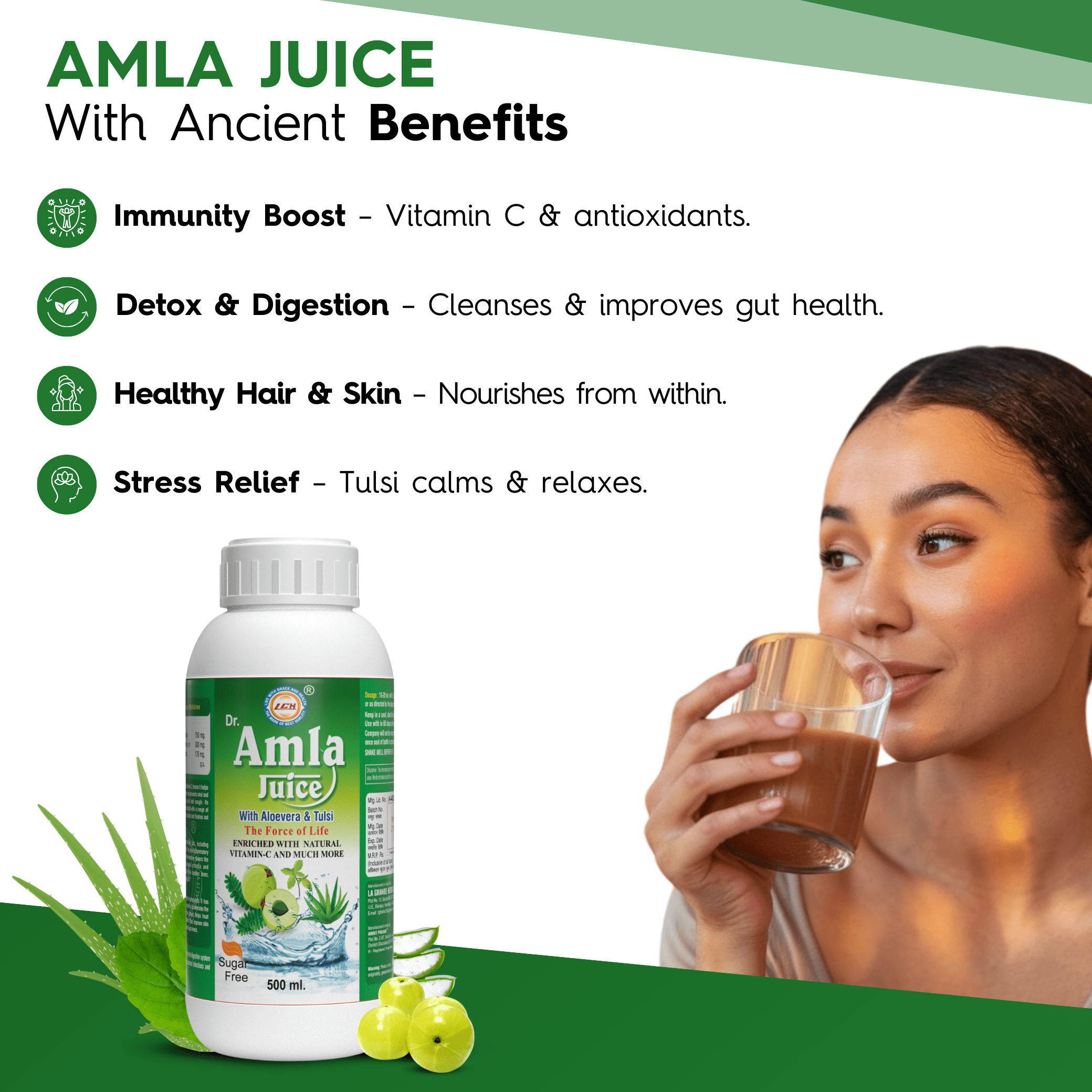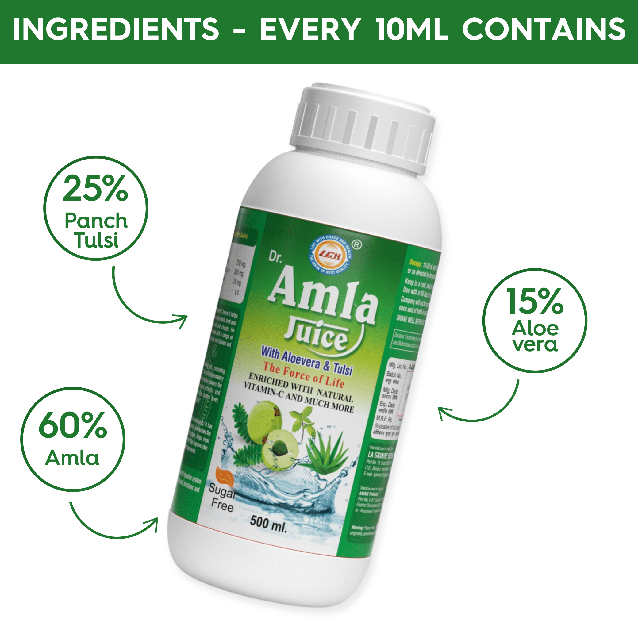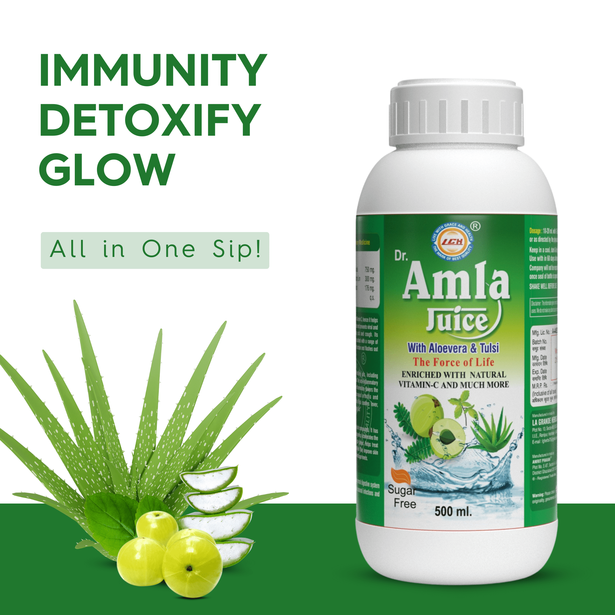 LGH Amla Juice with 3 Added Herbs, 500ml, Natural Detox Helps with Metabolism