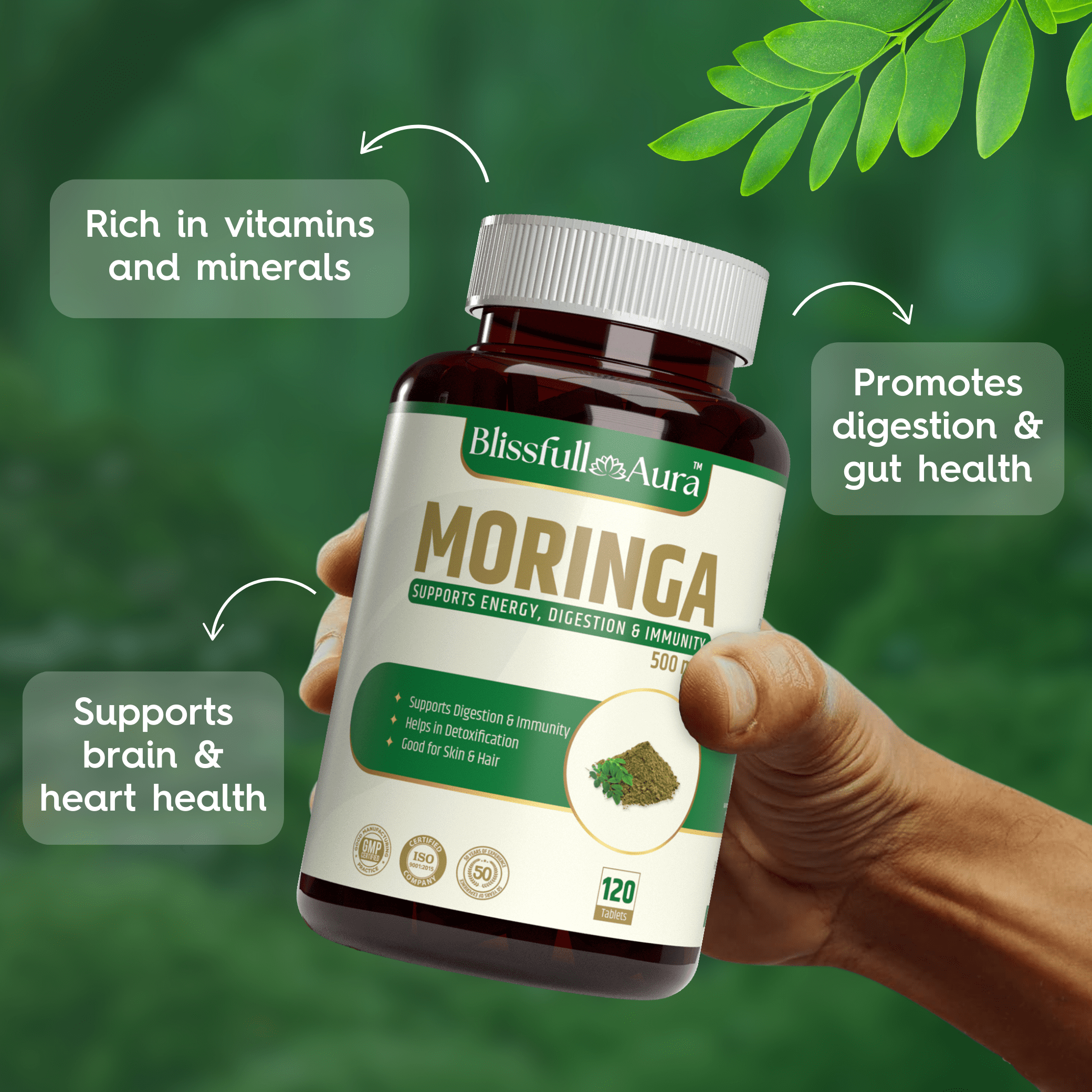 Organic Moringa Tablets, Stress Relief, 100% Natural, Helps in Digestion and Antioxidants, 120 Tablets