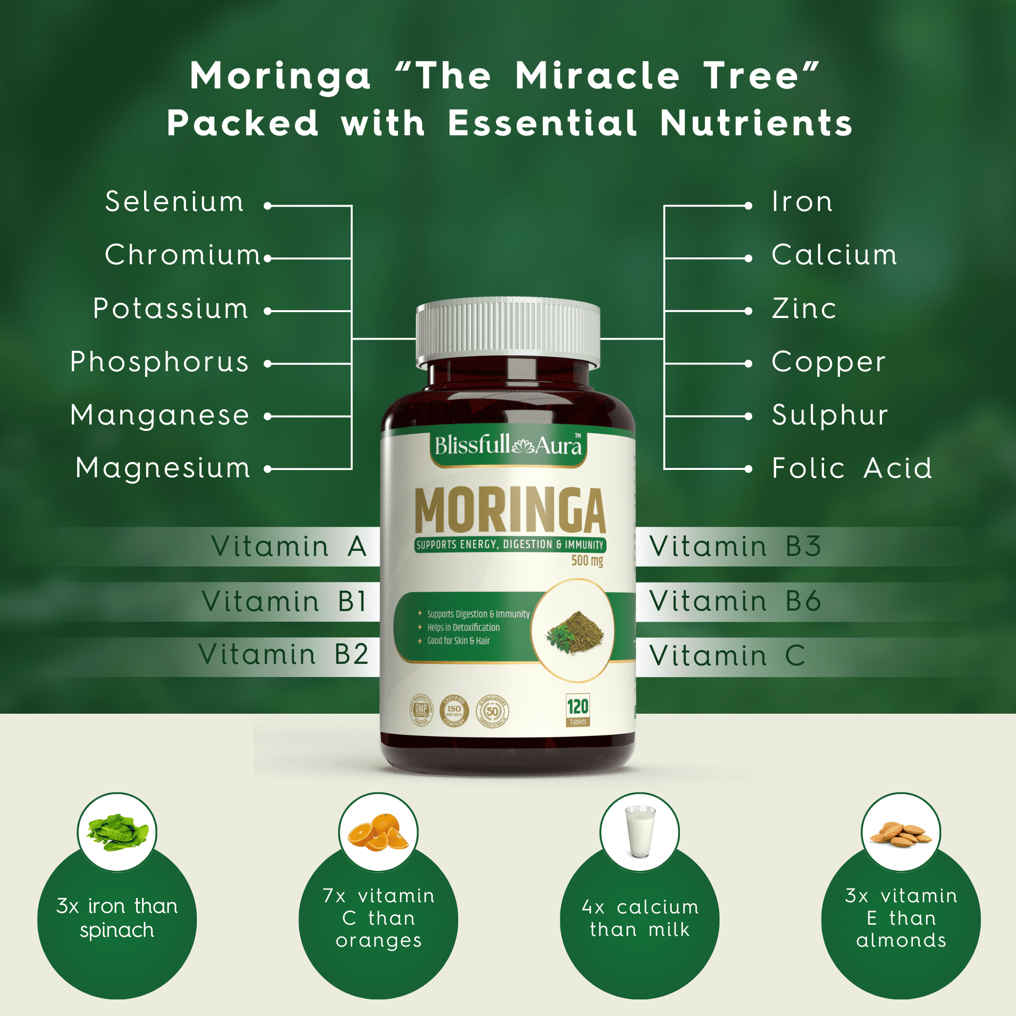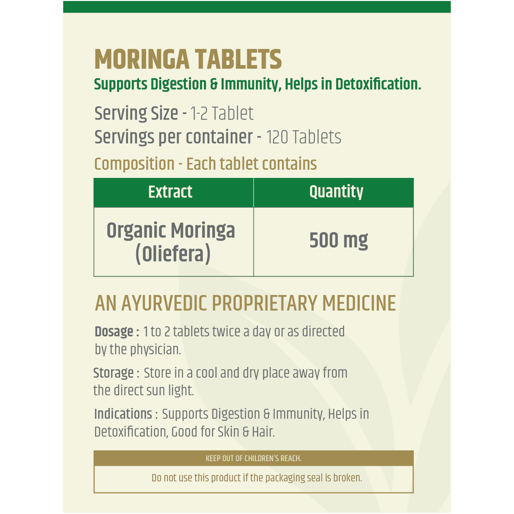 Organic Moringa Tablets, Stress Relief, 100% Natural, Helps in Digestion and Antioxidants, 120 Tablets quantity